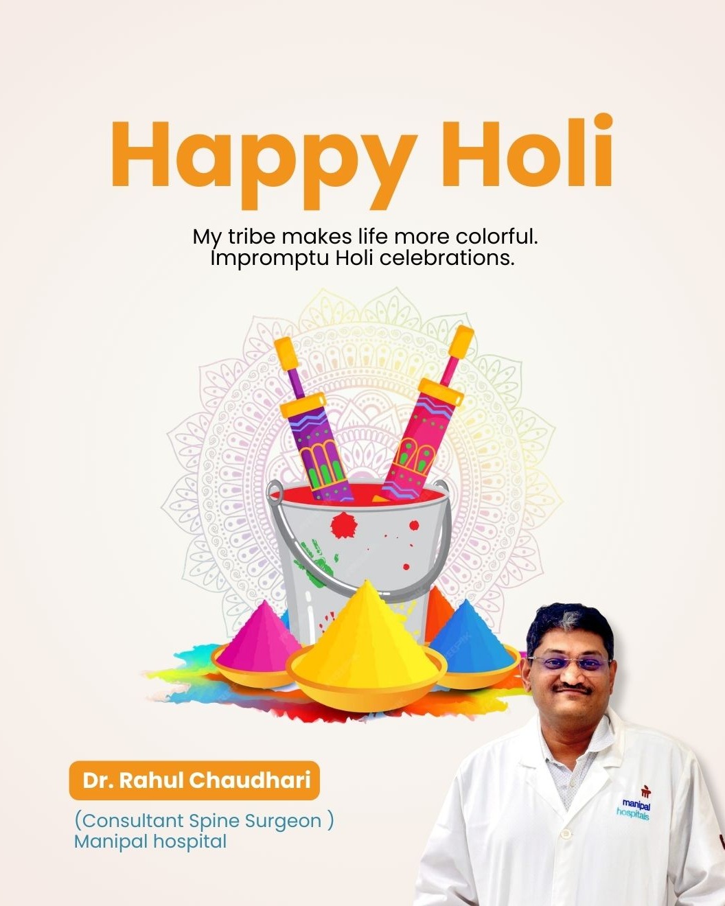 May this Holi brighten your life with joyful colors, positivity, and lasting good health Celebrate safely, spread positivity, and cherish joyful moments with your loved ones. Wishing you a bright, peaceful, and healthy year ahead. Happy Holi from Dr. Rahul Chaudhari. #happyholi #festivalofcolors #stayhealthy #doctorcare #healthandhappine
