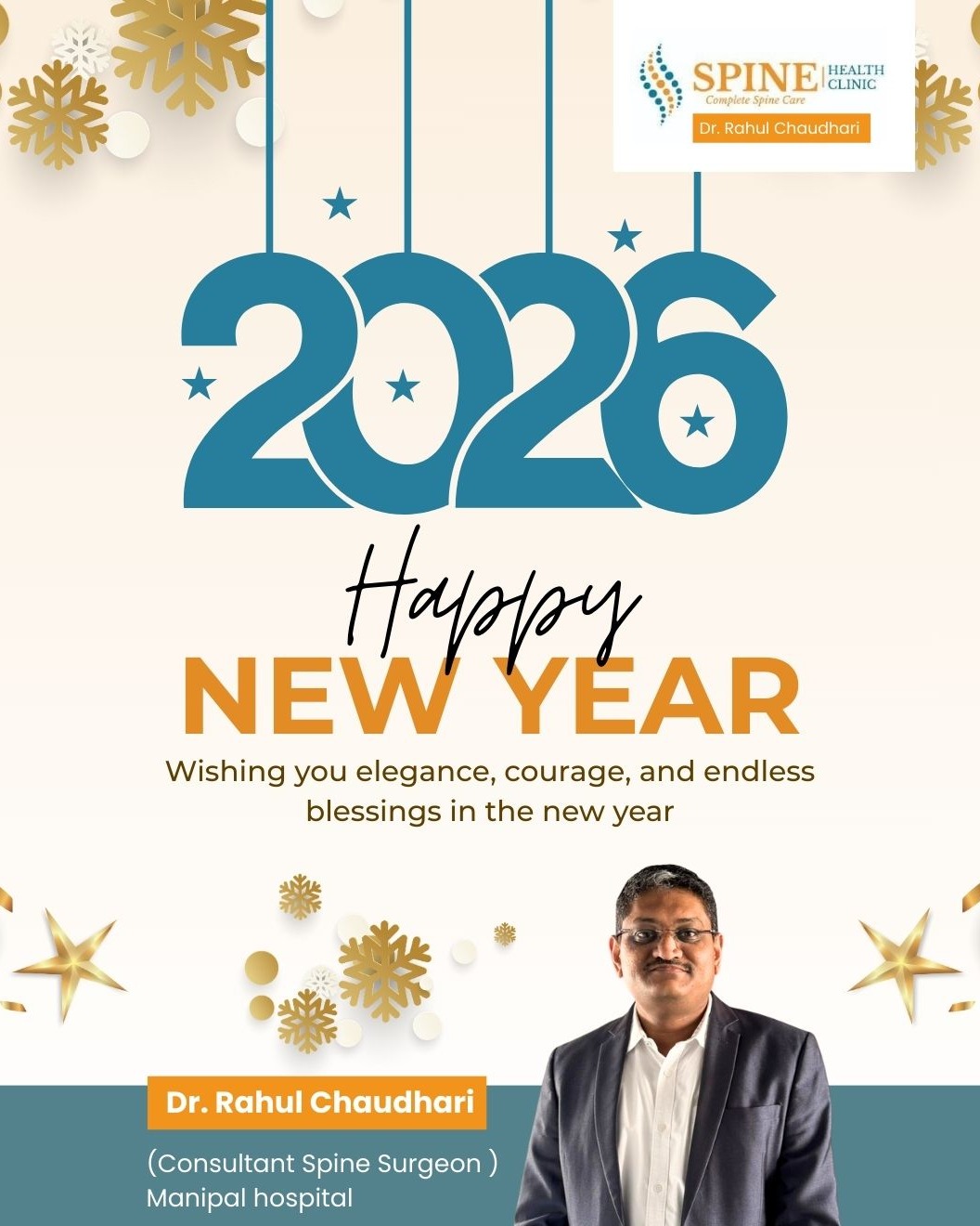 ✨ Step into a Healthy New Year! ✨ Wishing you and your family wellness, happiness, and peace throughout the year. Thank you for trusting us with your care. We remain committed to providing expert, compassionate, and personalized treatment every step of the way. — Dr. Rahul Chaudhari #HappyNewYear #HealthyNewYear #WellnessJourney #PatientCare #TrustedCare #PainManagement #SpineCare #DrRahulChaudhari