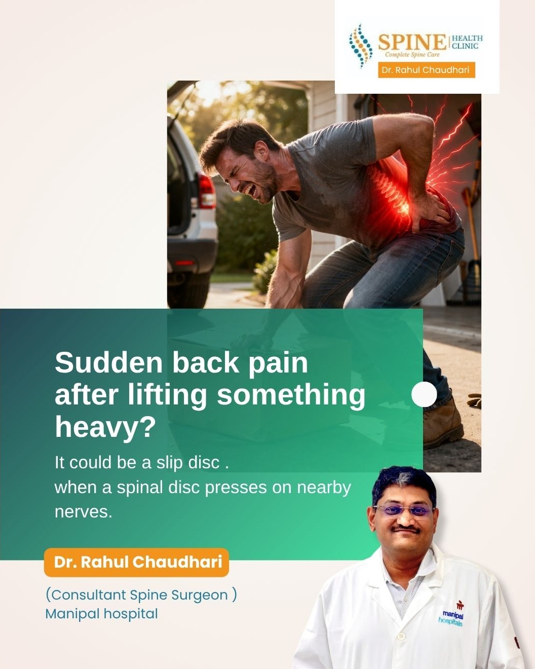 Sudden back pain after lifting something heavy? It could be a slip disc. This happens when a spinal disc presses on nearby nerves, causing sharp pain, stiffness, or even pain radiating to the legs. Many people ignore it as a simple strain, but delaying treatment can worsen the condition. Early diagnosis, rest, proper posture, and guided treatment can help manage symptoms effectively. Avoid heavy lifting and take care of your spine health. If pain persists, consult a specialist to prevent complications and recover faster with the right care and support. Looking for expert help? Consult the Best spine surgeon in pune for accurate diagnosis and care. Visit a Spine specialist in balewadi or the Best spine clinic in pune for advanced treatment, personalized plans, and effective solutions to relieve slip disc pain and restore your mobility. Get expert advice from Dr. Rahul Chaudhari, trusted Orthopedic and Best Spine Surgeon at Manipal Hospital. Right guidance can make all the difference! Consultation Timings: Manipal Baner OPD – Tue, Thu, Sat: 1:00–3:00 PM & 5:30–7:00 PM Manipal Kharadi OPD – Mon, Wed: 1:00–4:00 PM 📞 Manipal Hospital: 020 6813 8888 Spine Health Clinic – Mon, Wed, Fri: 5:00–7:00 PM 📞 Clinic: 8010130003 🌐 Visit: drrahulchaudhari.com #slipdisc #backpain #spinehealth #orthopedic #healthcare #spinesurgery